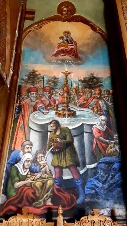 La interior a fost pictata de Costin Petrescu, cel care a realizat pictura interioara din Ateneul Roman si pictura Catedralei din Alba Iulia, opere pe care le-am admirat de fiecare data cand am avut ocazia.