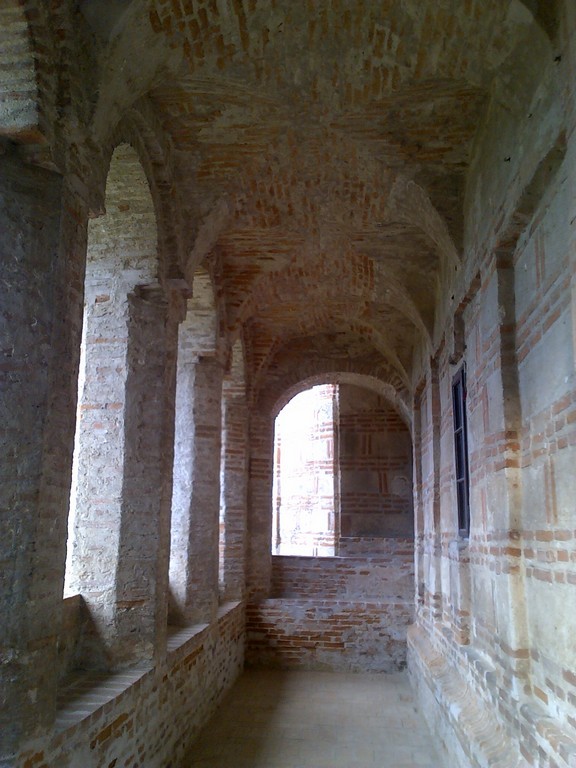 Manastirea Caldarusani are una dintre cele mai interesante arhitecturi de biserica din Tara Romaneasca, un lucru datorat in principal fatadei pridvorului intredeschis si pictat la interior, o fatada ce schiteaza pe mijloc o acolada monumentala, incadrata de arcuri romane ample ce m-au dus cu gandul la biserica familiei Leonida din Bogata Olteana.