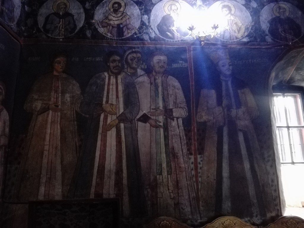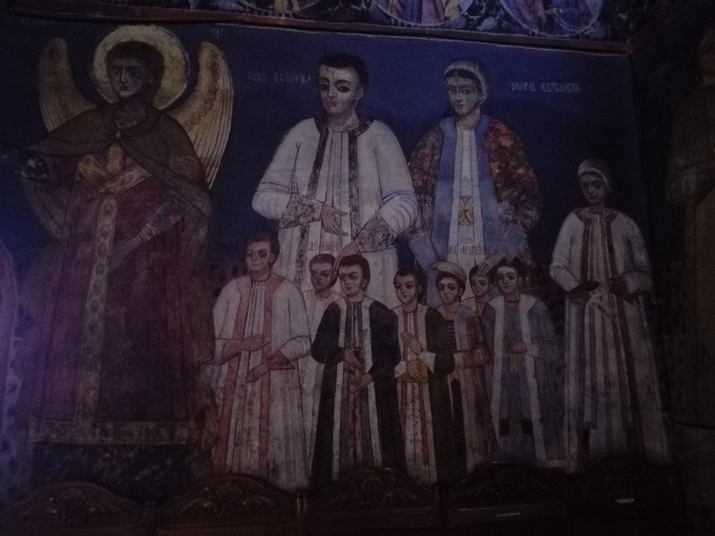 In pronaos i-am gasit pe ctitori alaturi de domnitorul Tarii Romanesti de la acea vreme, Alexandru Scarlat Ghica, iar in biserica cel mai mult mi-a placut catapeteasma de zid.