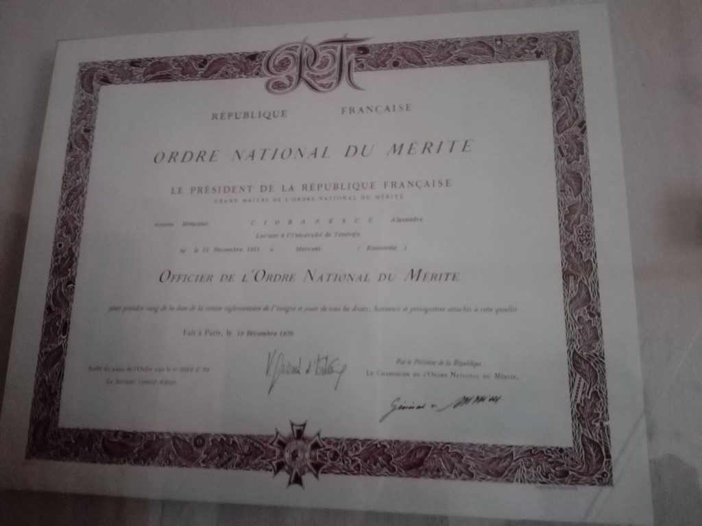 Despre George Cioranescu am aflat ca a fost poet si jurnalist, ajungand redactor sef la Europa Libera. I-am vazut intr-o camera biroul, reportofonul masiv, o poza in care apare alaturi de presedintele Frantei si mai multe obiecte personale.