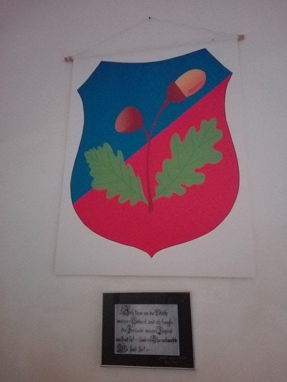 A incercat sa ne explice cat de bine stia despre istoria locului si am aflat cateva lucruri interesante. Inca de la intrare am vazut stema orasului cu doua ghinde, una goala si una plina, reprezentandu-i pe morti si pe vii.