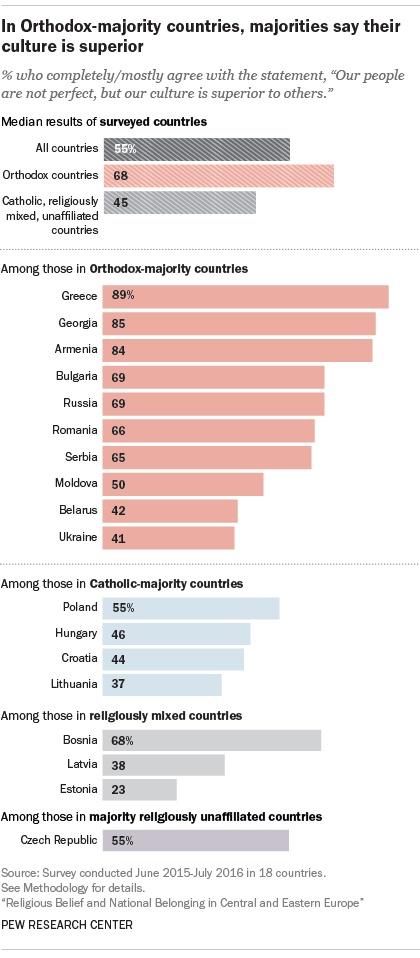 66% dintre români cred că este superioară altora cultura română, iar 54% sunt “foarte mândri” că sunt români