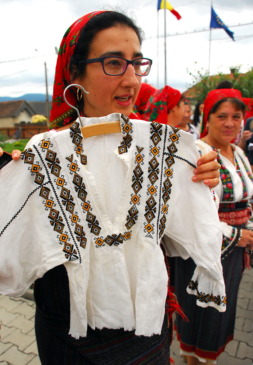 D-na Sanda Tifrea ne-a arătat diferite cămăşi vechi, moştenite din bunici şi mi-a povestit că şi ea a învăţat să coasă.