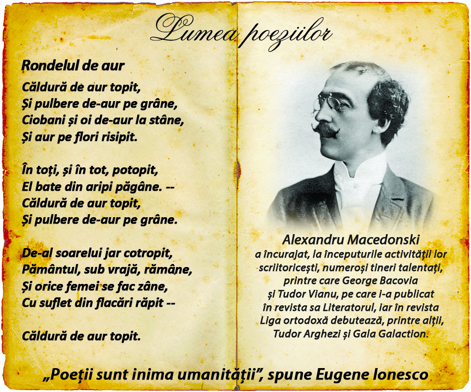 Alexandru_Macedonski_poezie Autor: Laurențiu Barbu 06/03/2020, 16:20 1.5k Views Articol publicat de Laurențiu Barbu Promovarea memoriei colective pentru conservarea identității românești!
