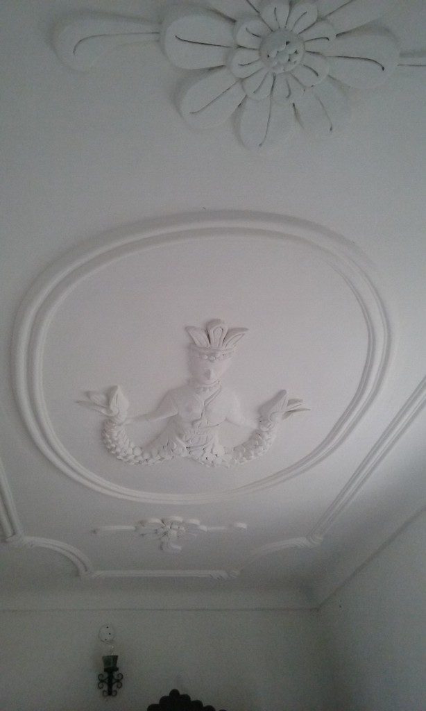 Am ramas in minte cu numeroase lucruri care mi-au bucurat privirea, de la piatra de moara incastrata in pavimentul de la intrare, un simbol al belsugului asa cum am mai vazut si la Palatul Brancovenesc Mogosoaia, la stucatura interesanta de pe plafoane, sobele cu olane, ornamentate cu semnul crucii sau cu acolada, mobilierul sculptat cu motive traditionale si scoartele oltenesti.