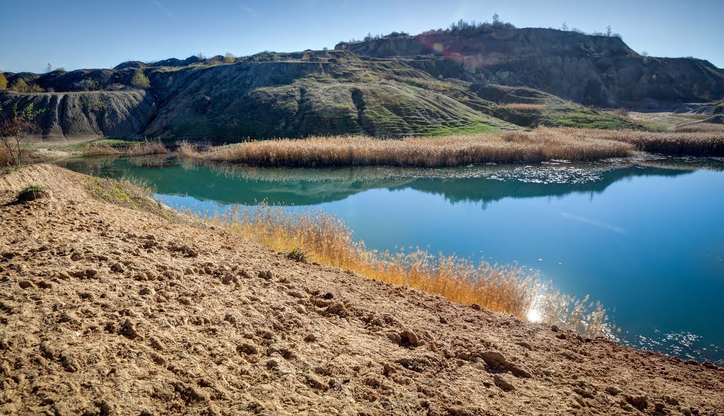 Lacul s-a format pe locul unei cariere de nisip, o fostă mină de caolin (argilă albă), ce aparţinea de Exploatarea Minei Aghireşu, unde apa s-a acumulat datorită unor izvoare subterane, dar şi prin reţinerea apei provenite din precipitaţii. De jur împrejurul lacului a crescut stufăriș, iar pereții de nisip și pietre calcaroase gălbui, s-au erodat în timp, dând locului o frumusețe aparte.