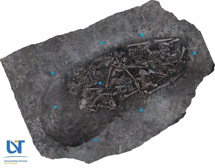 O echipă de arheologi din cadrul Universităţii de Vest din Timişoara cred că au descoperit un mormânt comun vechi de sute de ani, în care au fost îngropaţi şase adulţi şi un copil, victime ale ciumei.