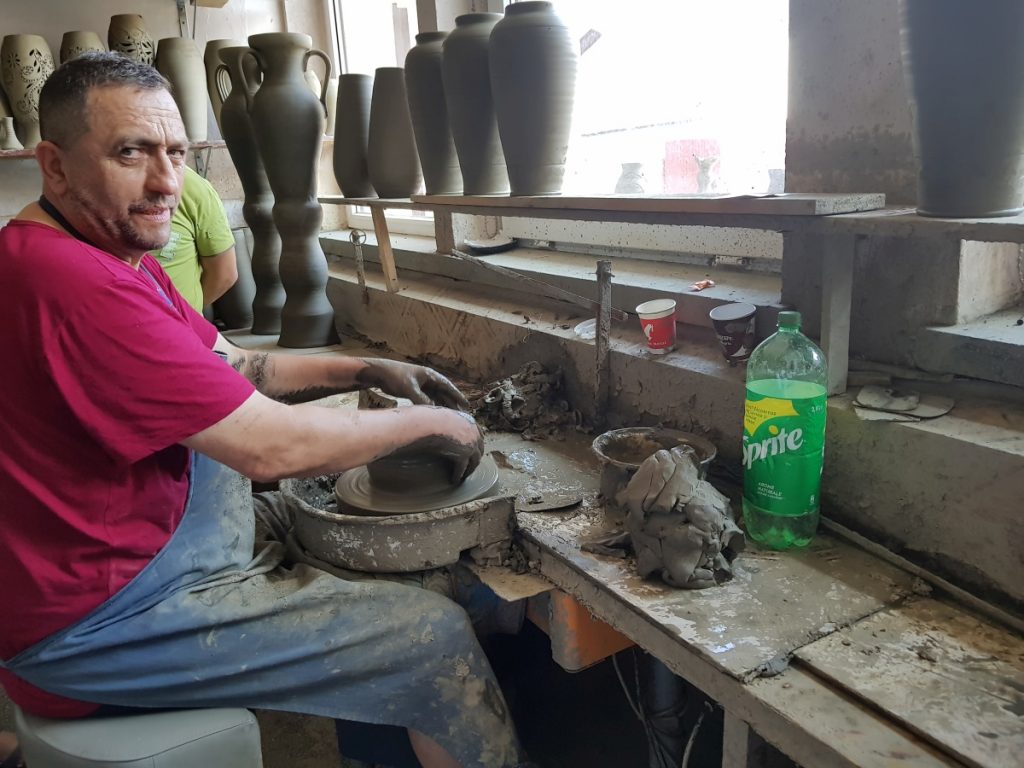 Un astfel de atelier am vizitat şi noi, cel aflat lângă restaurantul „La Masa Olarului”. Nu există taxă de intrare, intri şi îi admiri pe meşteşugari la treabă. Iar dacă ai poftă de o poveste despre olărit, e suficient să îi întrebi despre una, despre alta şi îţi vor risipi cu bucurie din curiozităţi. Lângă atelier ai să găseşti şi un magazin de desfacere de unde poţi alege produse locale la preţuri foarte bune.