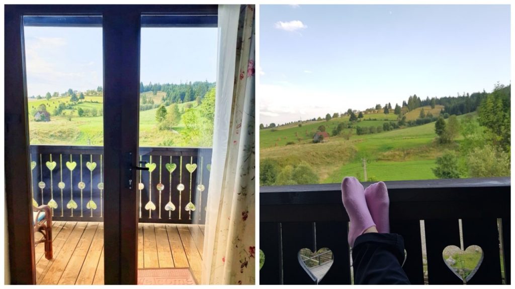Nici că puteam nimeri mai bine: poziţionare perfectă, fix în inima Bucovinei, vedere de la balcon de milioane, mâncarea excelentă, preţ decent pentru luna august (250 lei/ noapte cu mic-dejun inclus) şi – cireaşa de pe tort – un pârău care curge agale fix prin curtea pensiunii! E magnific să adormi cu geamul deschis, susurul apei pe fundal şi cântec de greieri (neobosiţi chiar şi pe timpul zilei).