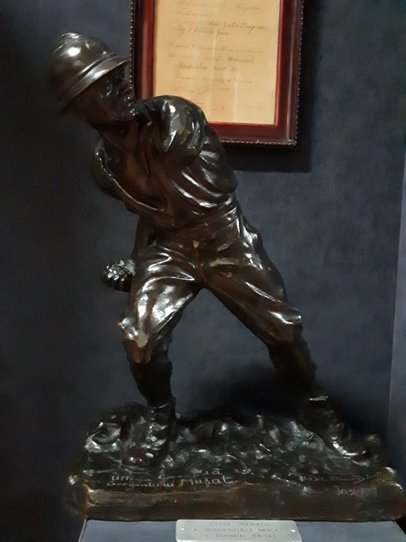 Am gasit aici o expozitie se servetele, o miniatura dupa “Ultima Grenada” din fata Garii Busteni si o sculptura a lui Tudor Vianu, poet si critic literar nascut in Giurgiu. Opera a fost realizata de Milita Patrascu, renumita scultptorita romana, o eleva a lui Brancusi, pe care am mai intalnit-o la mausoleul Octavian Goga de la Ciucea, la Muzeul Zambaccian, in Parcul Cismigiu prin sculptura lui Alexandru Odobescu, la Casa Memoriala George Bacovia, in Constanta si mozaicul Fantanii Miorita din capitala.