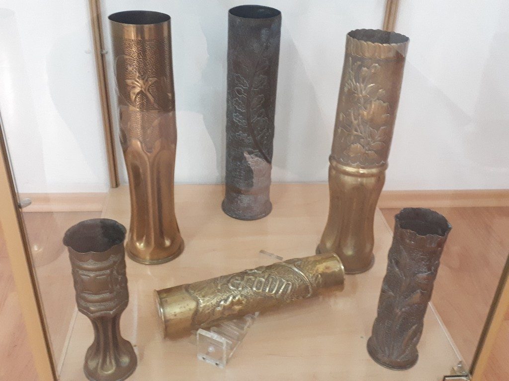 Inedite au fost si lucrarile de arta facute in tuburi de obuze si grenade, precum si cele realizate in metal reprezentant teme de razboi.