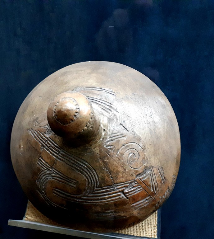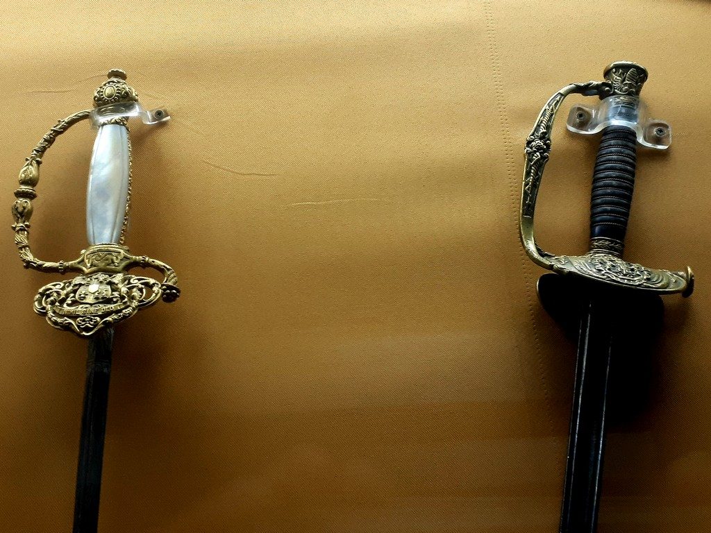 M-am oprit sa admir si o sabie de Toledo, sabii cu moto-ul Casei Regale “Nihil sine Deo”, un interesant scut lucrat cu scene de lupta, o cutie cu o maimuta cu turban pe cap si un tezaur cu primele monezi emise pe teritoriul Tarii Romanesti, asa cum am vazut si la Muzeul BNR si Muzeul Severeanu din Bucuresti.