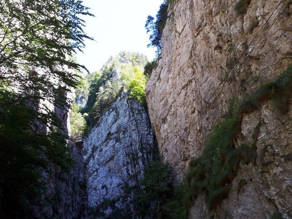 Ne-am intors apoi spre cheile Dambovicioarei, unde intrarea in defileu ne-a costat 2 lei de persoana. Puteti lasa masina aici si parcurge pe jos circa 4 km pana la pestera sau mai departe pana in cheile Brusturetului, totusi nu as recomanda asta avand in vedere faptul ca nu este un drum amenajat pentru pietoni iar drumul ingust din chei abia permite trecerea a doua masini una pe langa cealalta.