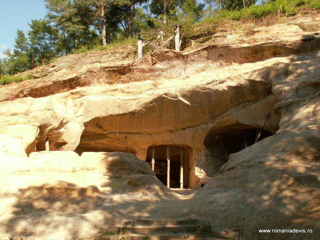 Nimeni nu ştie care au fost mâinile care au săpat cinci încăperi aici, în biserica rupestră, două altare şi un turn înalt de 10 metri, prin a cărui deschidere se vede cerul. Grota este scobită în poalele dealului, iar forma ei stranie impresionează ochiul. Locul este împodobit de icoane, iar aici candelele nu apucă să se stingă niciodată.
