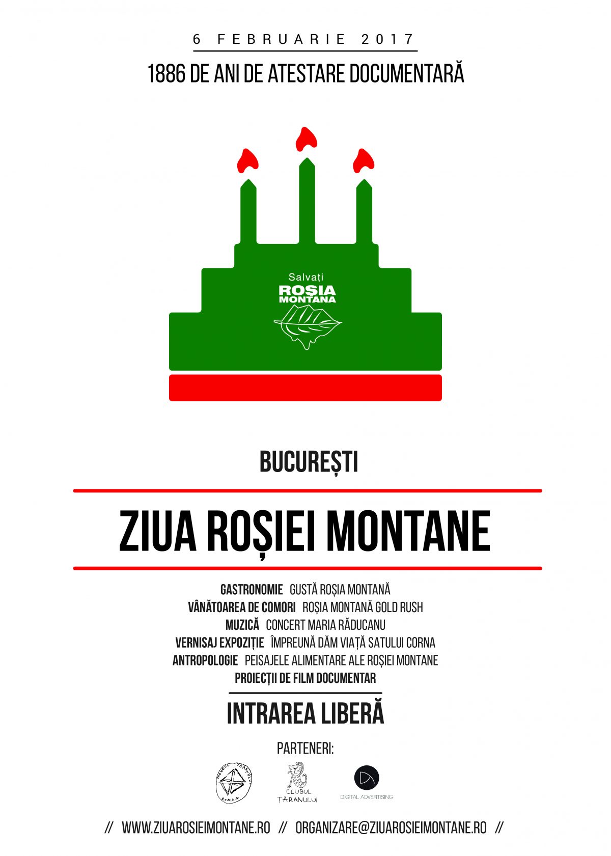 Roșia Montană dă petrecere de ziua ei! Pe 6 februarie 2017, se împlinesc 1886 de ani de atestare documentară a localității din Apuseni, iar Ziua Roșiei Montane este sărbatorită în București la Muzeul Național al Țăranului Român și Clubul Țăranului.